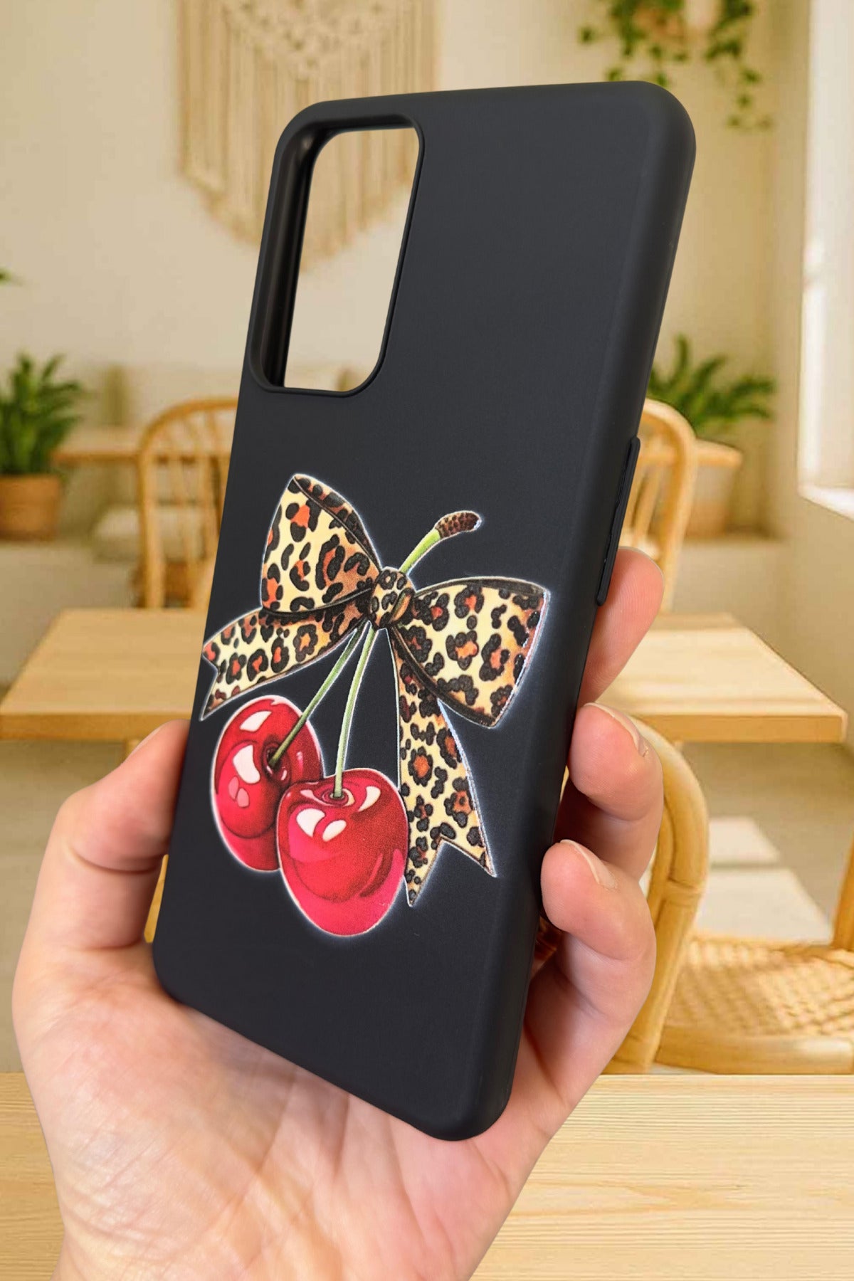 Samsung Galaxy A71 Uyumlu Kiraz Leopar Fiyonk Desenli Silikon Darbe Emici Rubber Kılıf