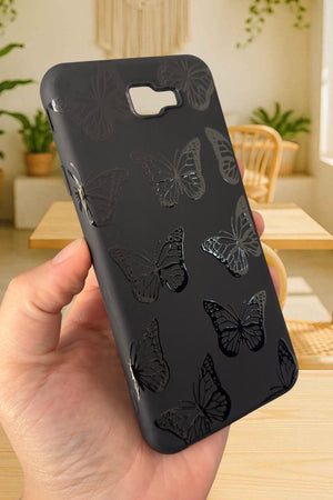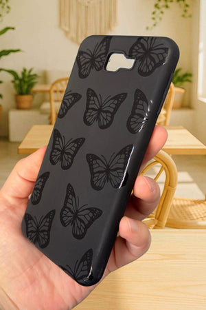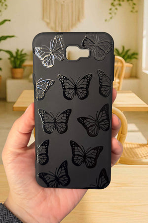 Samsung Galaxy J7 Prime Uyumlu Siyah Kelebek Desenli Silikon Darbe Emici Rubber Kılıf