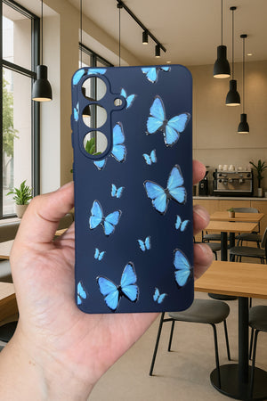 Samsung Galaxy M34 - MAVİ KELEBEK DESENLİ Silikon Darbe Emici Klasik Korumalı Rubber Kılıf