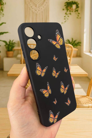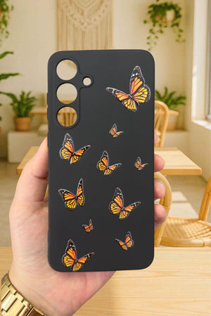 Samsung Galaxy M34 - TURUNCU KELEBEK DESENLİ Silikon Darbe Emici Klasik Korumalı Rubber Kılıf