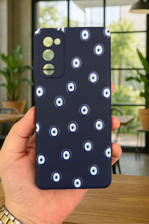 Samsung Galaxy S20 Fe - Nazar Boncuk Desenli Silikon Darbe Emici Klasik Korumalı Rubber Kılıf