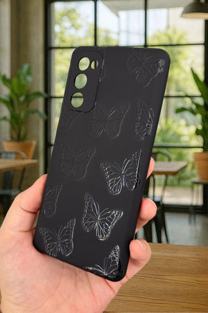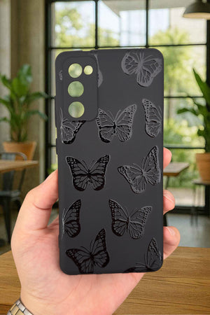 Samsung Galaxy S20 Fe - Siyah Kelebek Desenli Silikon Darbe Emici Klasik Korumalı Rubber Kılıf