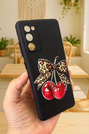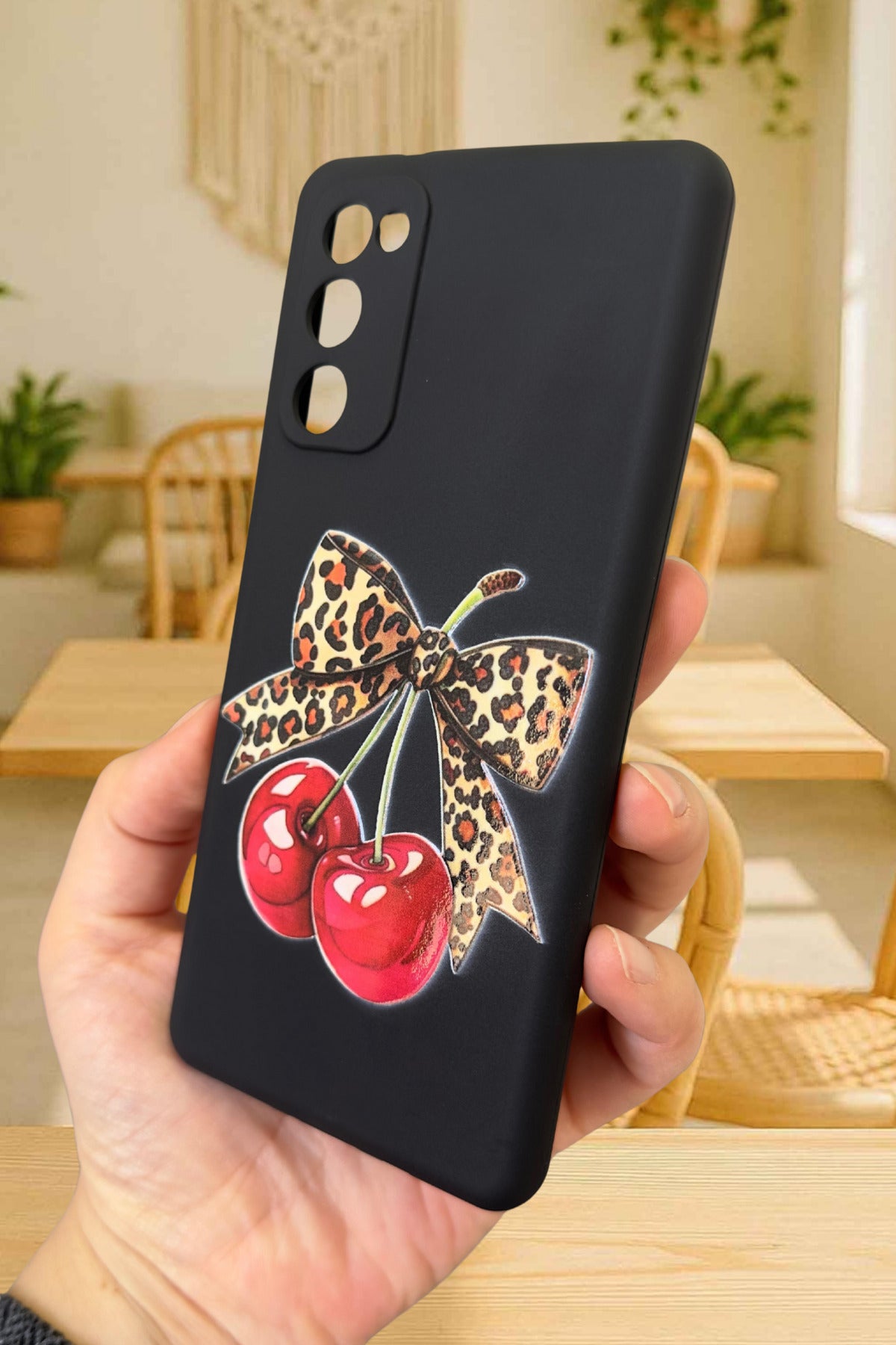 Samsung Galaxy S20 Fe Uyumlu Kiraz Leopar Fiyonk Desenli Silikon Darbe Emici Rubber Kılıf