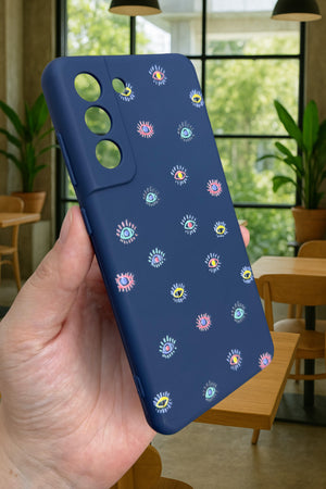 Samsung Galaxy S21 Fe - MİNİ EVIL EYE DESENLİ Silikon Darbe Emici Klasik Korumalı Rubber Kılıf