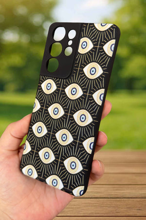 Samsung Galaxy S21 Ultra Uyumlu Evıl Eye Desenli Silikon Darbe Emici Klasik Korumalı Rubber Kılıf