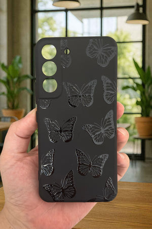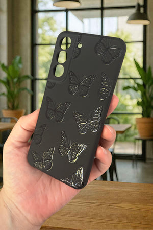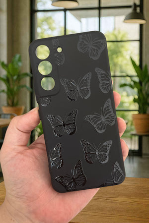 Samsung Galaxy S22- SİYAH KELEBEK DESENLİ Silikon Darbe Emici Klasik Korumalı Rubber Kılıf