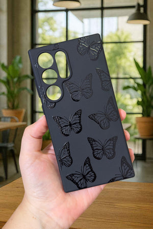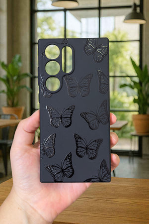 Samsung Galaxy S23 Ultra-SİYAH KELEBEK DESENLİ Silikon Darbe Emici Klasik Korumalı Rubber Kılıf
