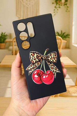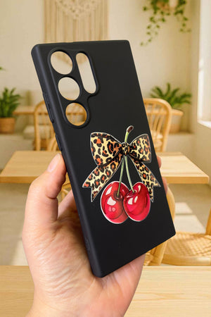 Samsung Galaxy S23 Ultra Uyumlu Kiraz Leopar Fiyonk Desenli Silikon Darbe Emici Rubber Kılıf