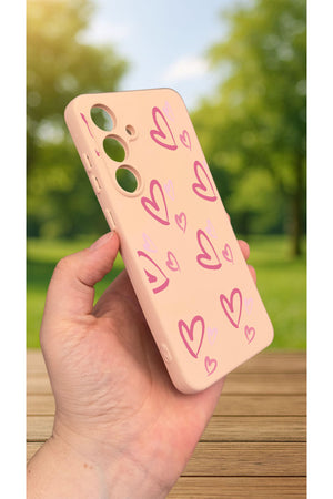Samsung Galaxy S23FE -PEMBE KALP DESENLİ Silikon Darbe Emici Klasik Korumalı Rubber Kılıf
