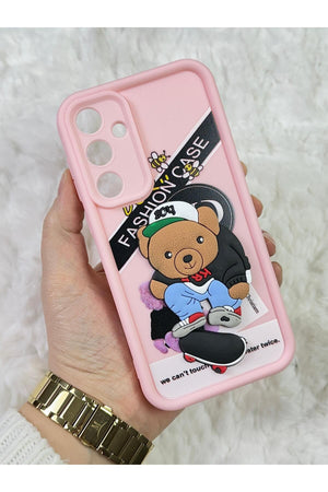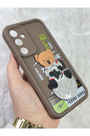 Samsung Galaxy S24 - Kabartmalı 3D Ayıcık Desenli Silikon Kamera Korumalı Lansman Ayıcıklı Kılıf