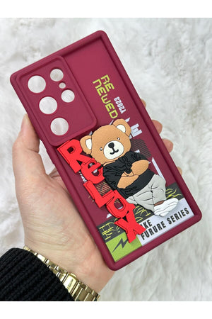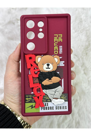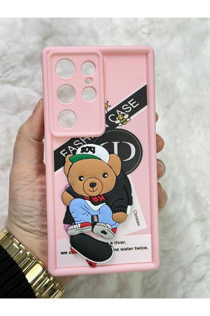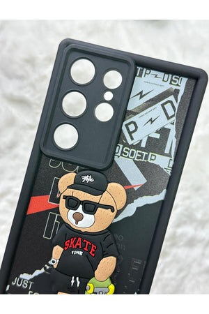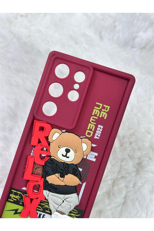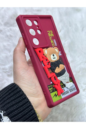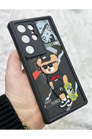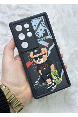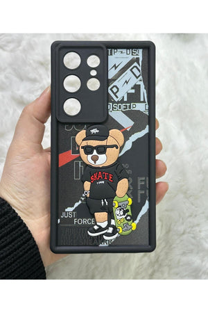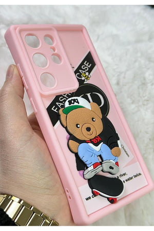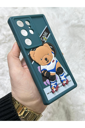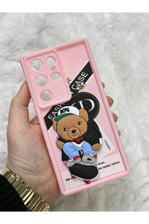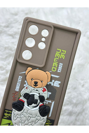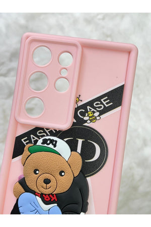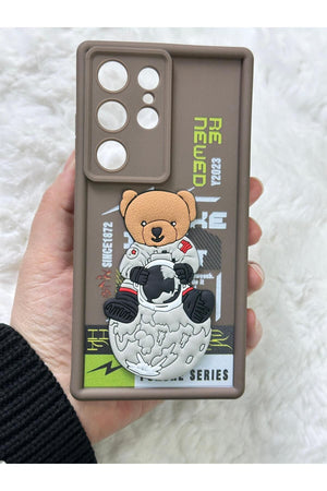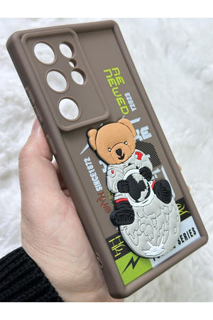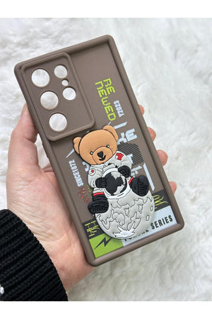 Samsung Galaxy S24 ULTRA - Kabartmalı 3D Ayıcık Desenli Silikon Kamera Korumalı Lansman Ayıcıklı