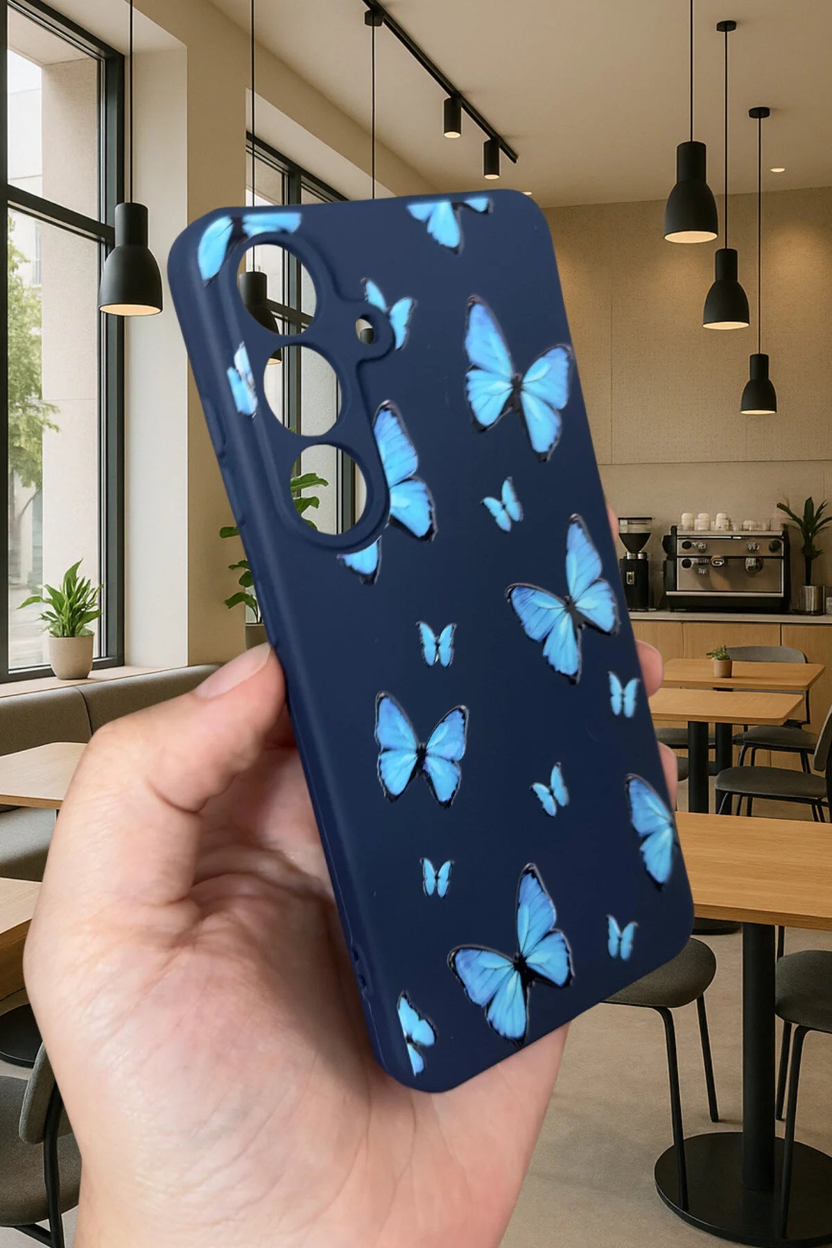 Samsung Galaxy S25 - MAVİ KELEBEK DESENLİ Silikon Darbe Emici Klasik Korumalı Rubber Kılıf