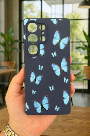 Samsung Galaxy S25 Ultra - Mavi Kelebek Desenli Silikon Darbe Emici Klasik Korumalı Rubber Kılıf