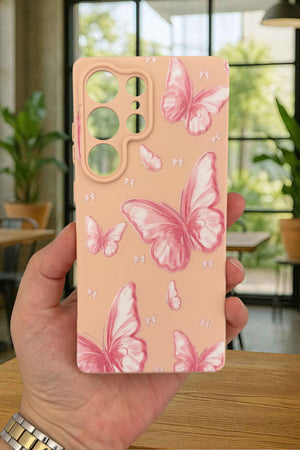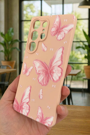 Samsung Galaxy S25 Ultra - Pembe Kelebek Desenli Silikon Darbe Emici Klasik Korumalı Rubber Kılıf