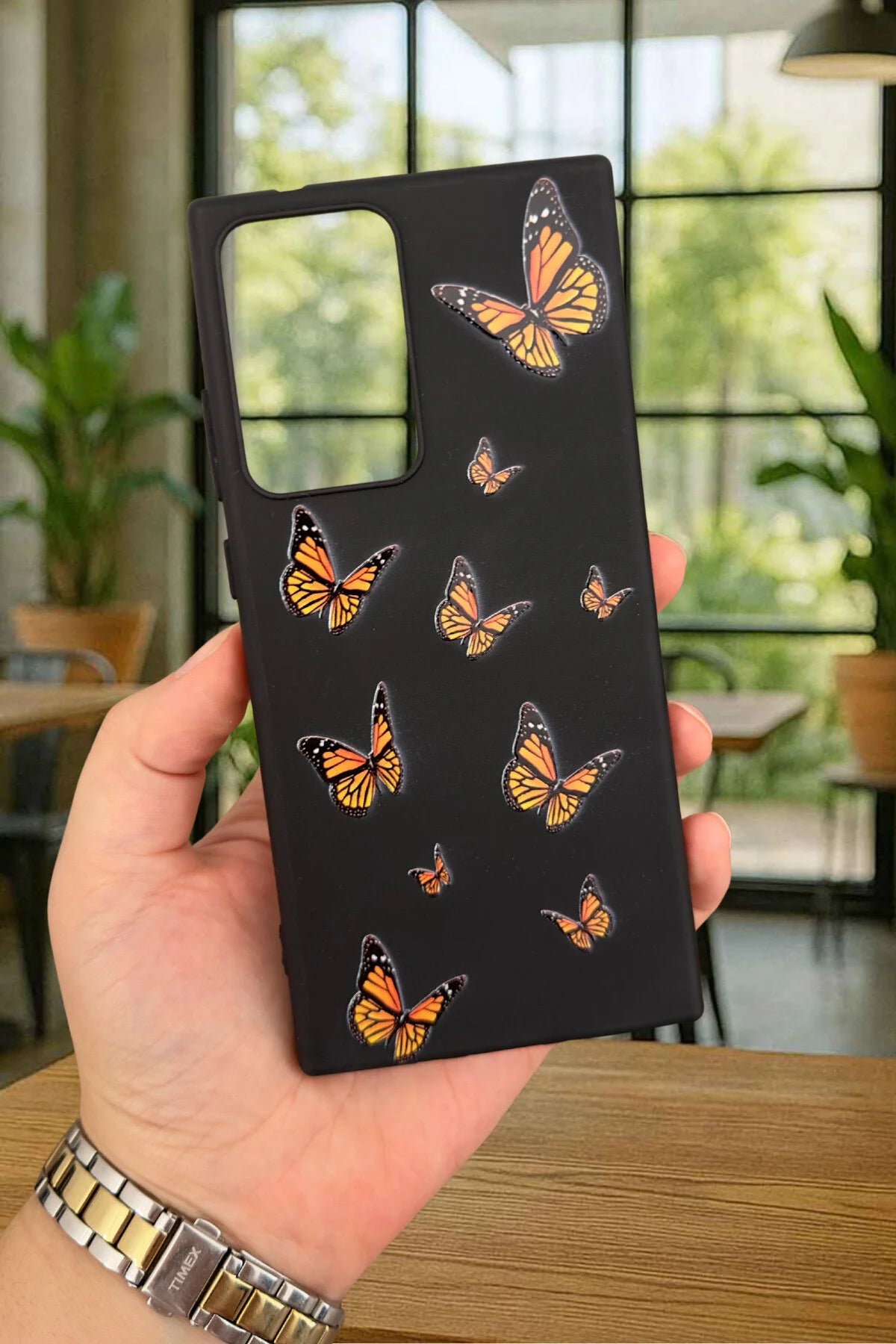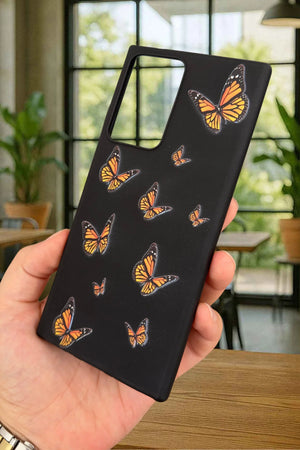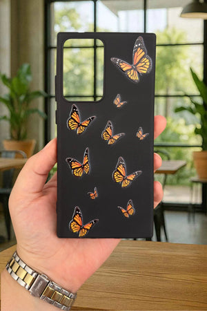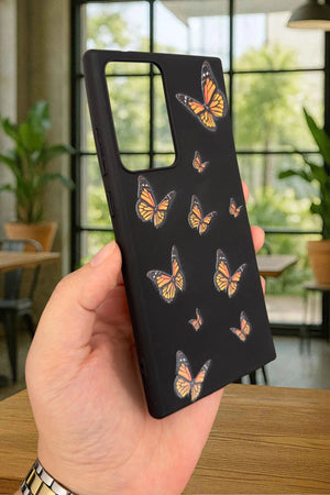 SM Galaxy Note 20 Ultra Turuncu Kelebek Desenli Silikon Darbe Emici Klasik Korumalı Rubber Kılıf