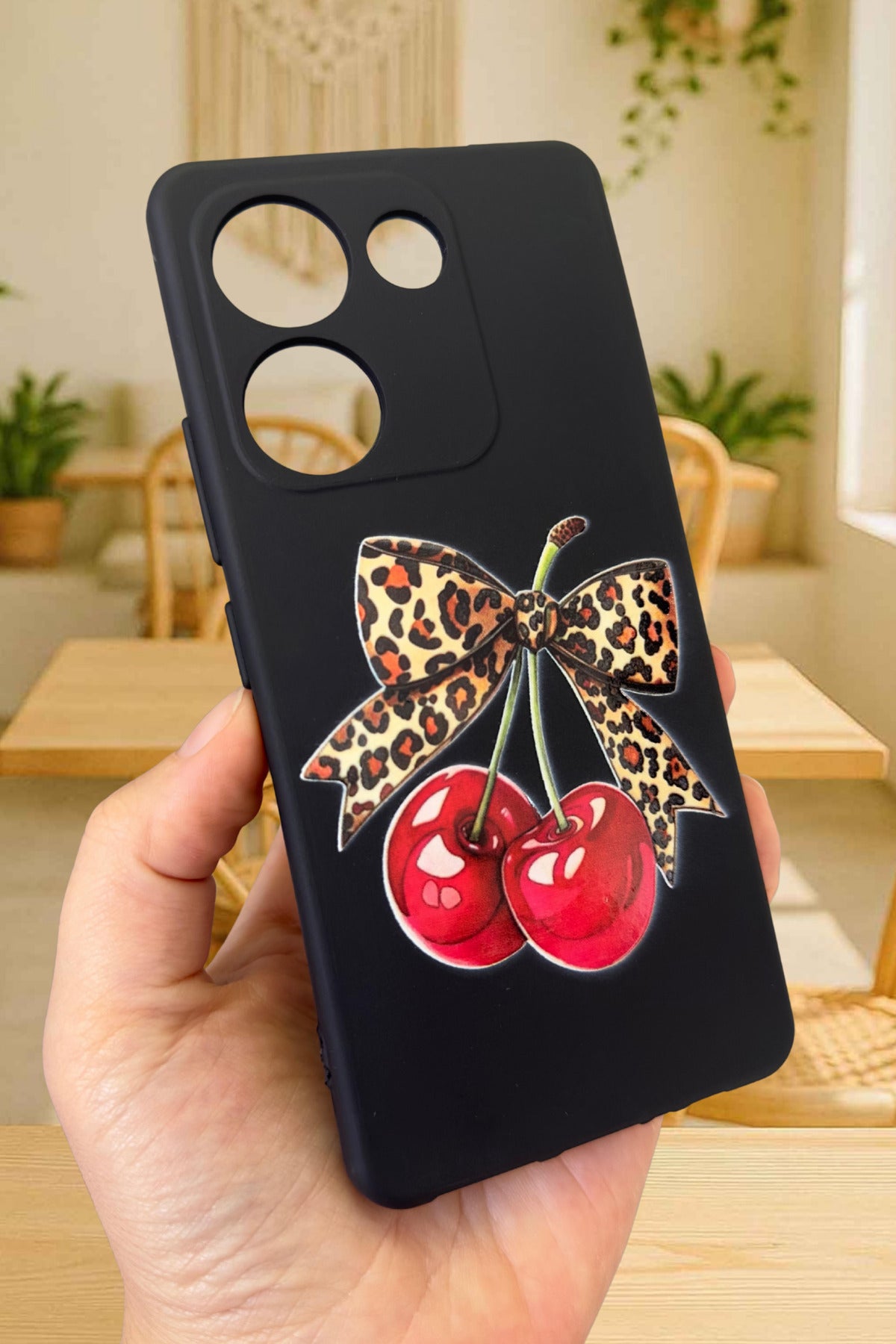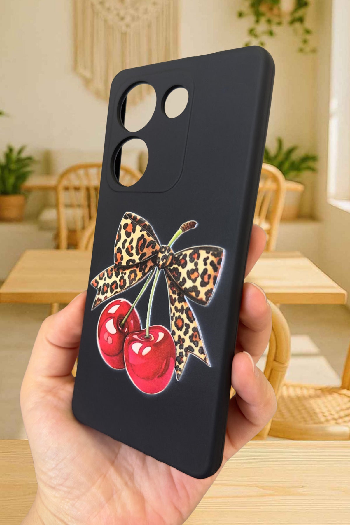 TECNO CAMON 20 PRO Uyumlu Kiraz Leopar Fiyonk Desenli Silikon Darbe Emici Rubber Kılıf