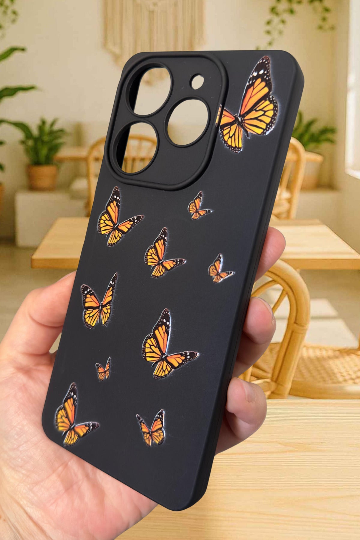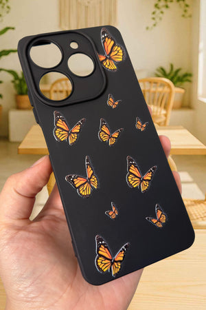 Tecno Spark 10 PRO Uyumlu Turuncu Kelebek Desenli Silikon Darbe Emici Rubber Kılıf