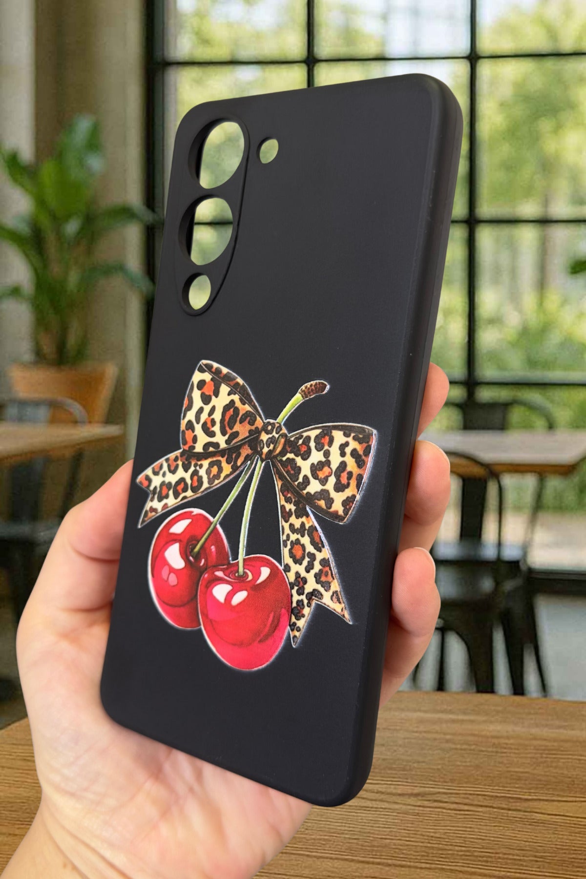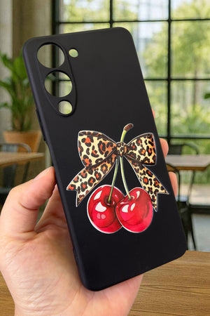 VİVO Y19 Uyumlu Kiraz Leopar Fiyonk Desenli Silikon Darbe Emici Klasik Korumalı Rubber Kılıf