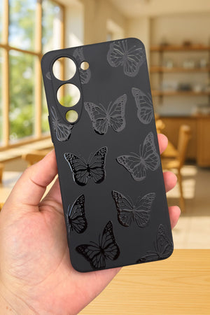 VİVO Y19 Uyumlu Siyah Kelebek Desenli Silikon Darbe Emici Klasik Korumalı Rubber Kılıf