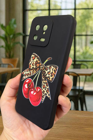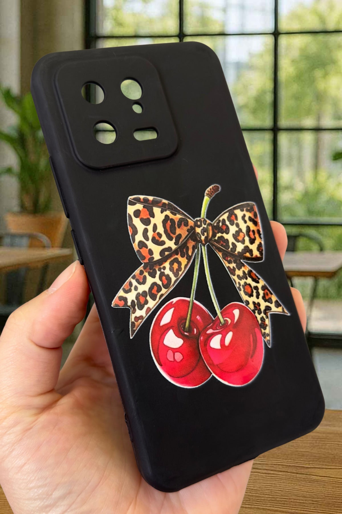 Xiaomi Mi 13 Uyumlu Kiraz Leopar Fiyonk Desenli Silikon Darbe Emici Klasik Korumalı Rubber Kılıf