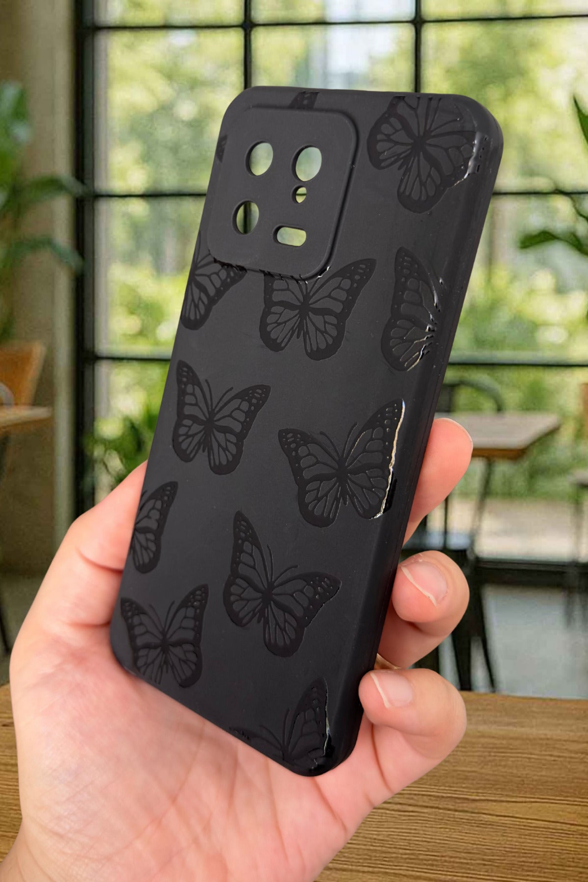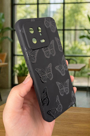 Xiaomi Mi 13 Uyumlu Siyah Kelebek Desenli Silikon Darbe Emici Klasik Korumalı Rubber Kılıf