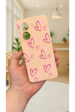Xiaomi POCO X7 PRO PEMBE KALP DESENLİ Silikon Darbe Emici Klasik Korumalı Rubber Kılıf