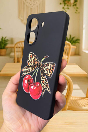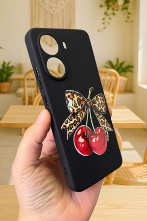 Xiaomi POCO X7 PRO Uyumlu Kiraz Leopar Fiyonk Desenli Silikon Darbe Emici Rubber Kılıf