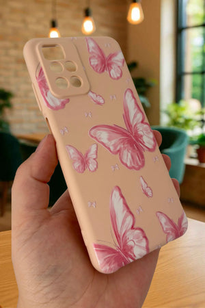 Xiaomi Redmi 10 2022 PEMBE KELEBEK DESENLİ Silikon Darbe Emici Klasik Korumalı Rubber Kılıf