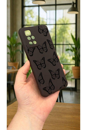 Xiaomi Redmi 10 2022 SİYAH KELEBEK DESENLİ Silikon Darbe Emici Klasik Korumalı Rubber Kılıf