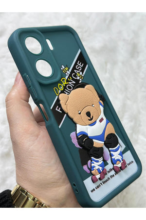 Silikonlu Lansman Ayıcıklı Kılıf, şık ve dikkat çekici tasarımıyla telefonunuzu hem korur hem de tarzınıza zarif bir dokunuş katar.; Yüksek kaliteli sert silikon malzemesi, darbeye karşı dayanıklılık sağlarken çizilmelere karşı güçlü bir koruma sunar.; Kılıfın üzerindeki sevimli ayıcık deseni, ürünün hem eğlenceli hem de modern bir görünüm kazanmasını sağlar.; Özellikle yeşil renk seçeneğiyle doğal ve ferah bir stil yakalayan bu model, cihazınıza tam uyum sağlayarak tüm bağlantı noktalarına ve düğmelere kolay erişim imkanı sunar.; Hem günlük kullanım hem de özel günler için ideal bir aksesuar olarak öne çıkar.; "