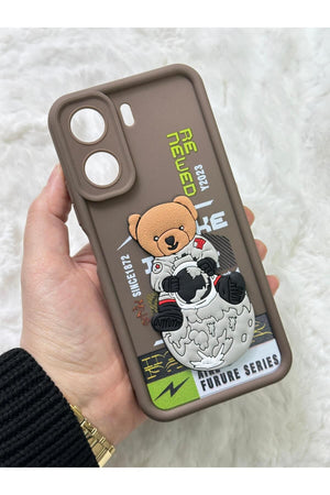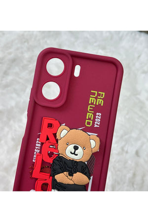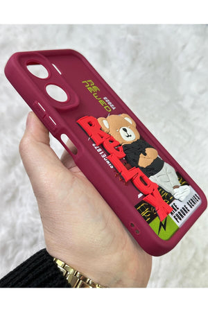 Xiaomi Redmi 13C - Kabartmalı 3D Ayıcık Desenli Silikon Kamera Korumalı Lansman Ayıcıklı Kılıf