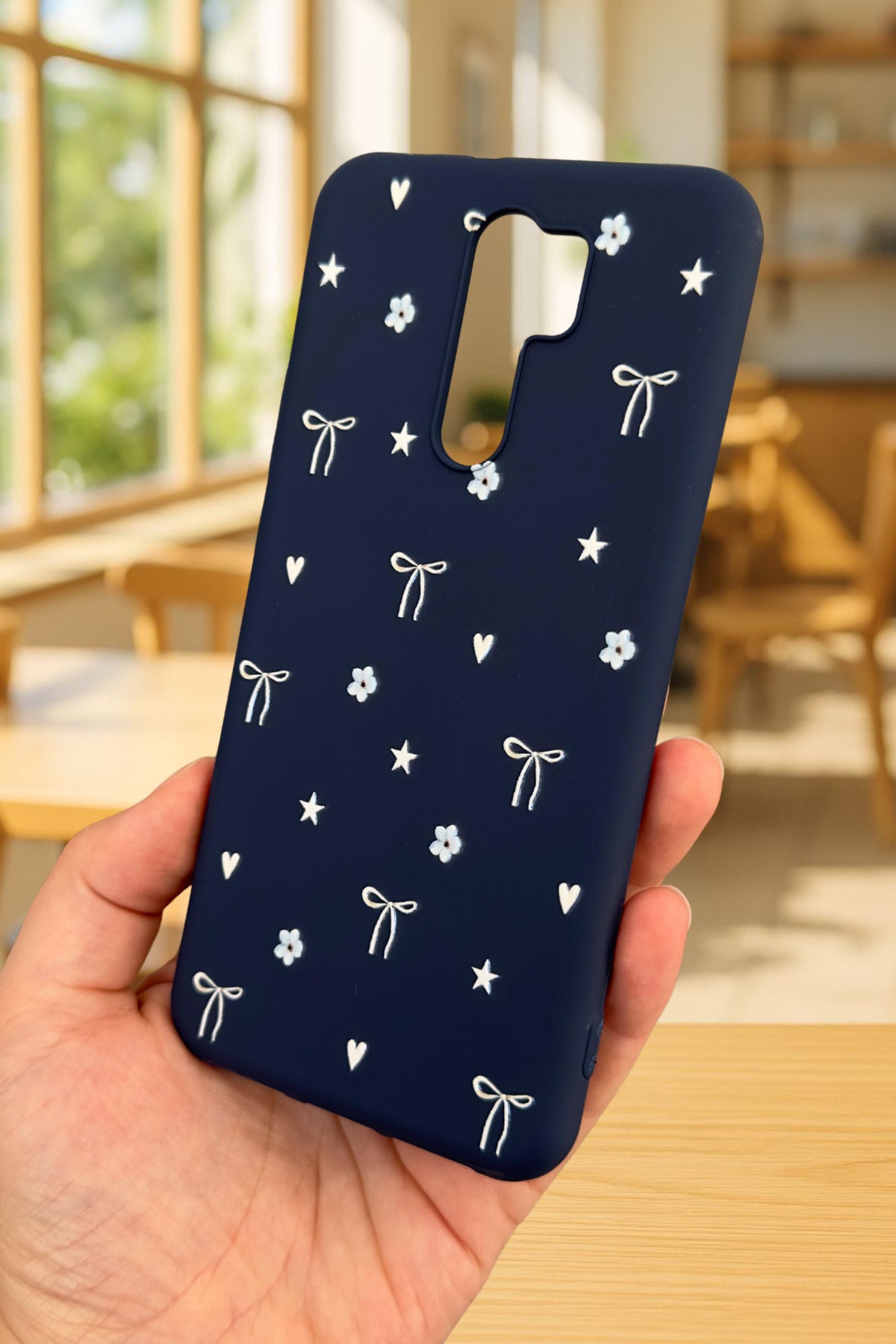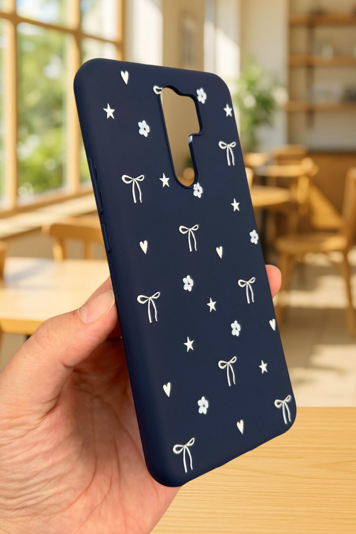 Xiaomi Redmi 9 Uyumlu Mini Fiyonk Desenli Silikon Darbe Emici Klasik Korumalı Rubber Kılıf