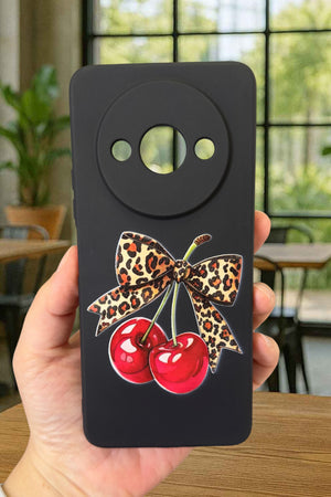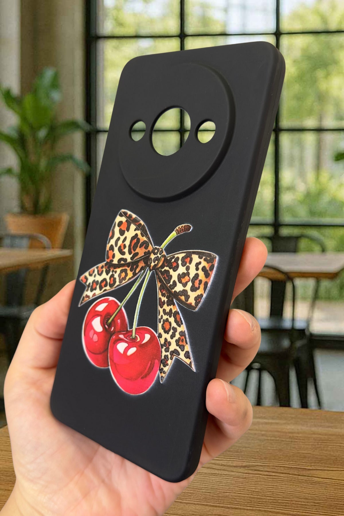 Xiaomi Redmi A3 Uyumlu Kiraz Leopar Fiyonk Desenli Silikon Darbe Emici Klasik Rubber Kılıf