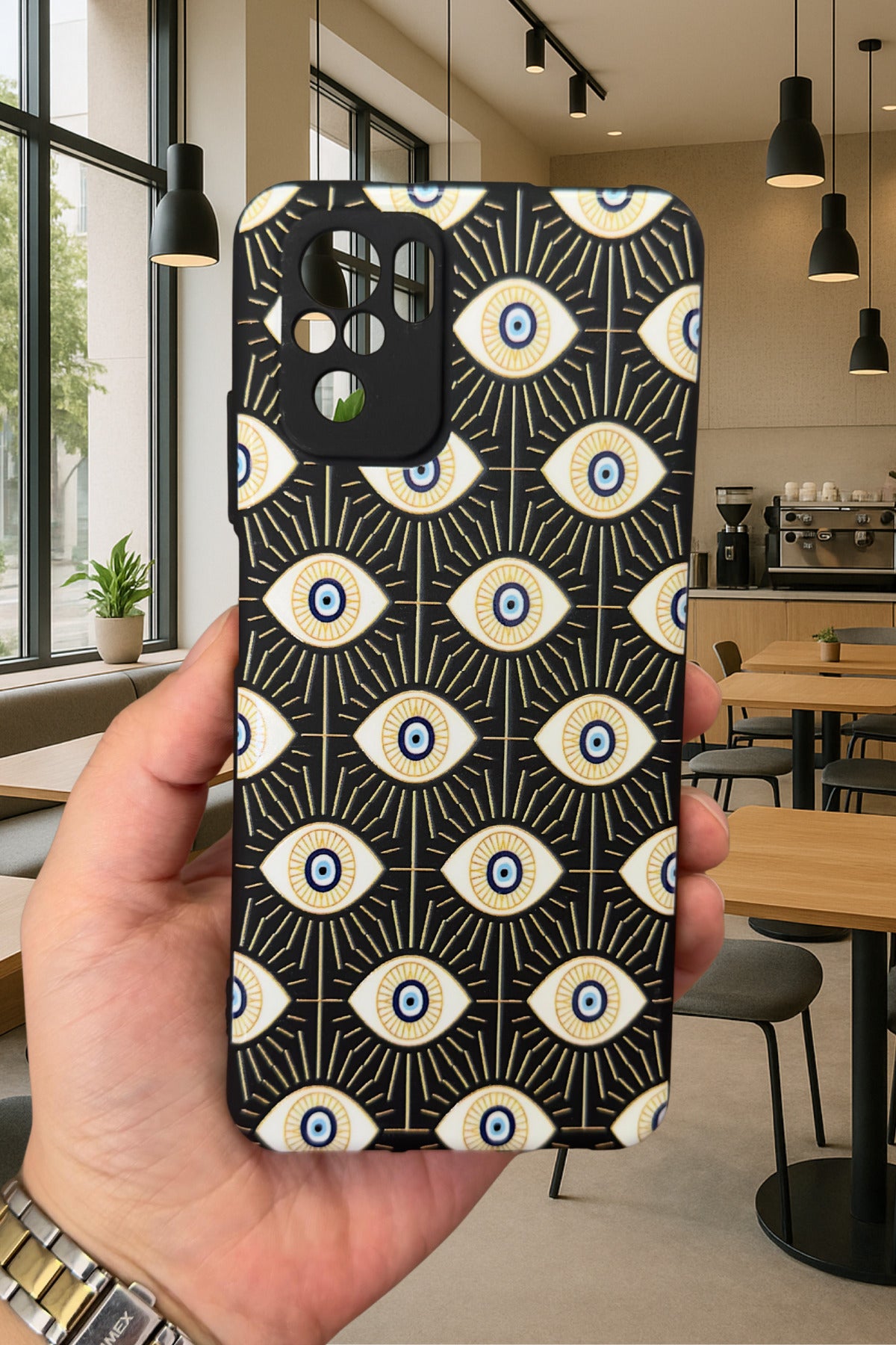 Xiaomi Redmi Note 10/10S Uyumlu EVIL EYE DESENLİ Silikon Darbe Emici Klasik Korumalı Rubber Kılıf