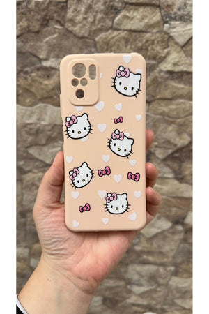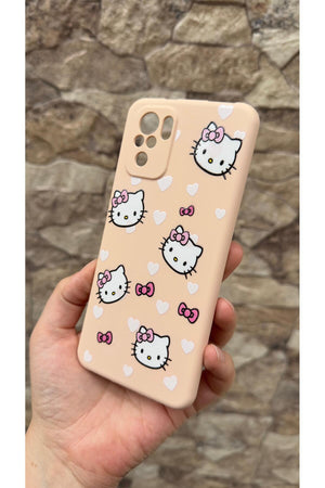 Xiaomi Redmi Note 10 ve 10S Uyumlu Hello Kity Silikon Darbe Emici Klasik Korumalı Rubber Kılıf