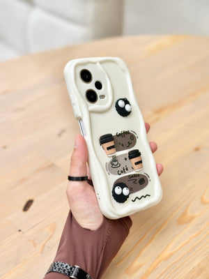Sevimli ve eğlenceli tasarımlı akıllı telefon kılıfı. Kahve temalı şirin çizimlerle süslenmiş - içecek bardakları ve büyük gözlü sevimli yaratık figürleri bulunuyor. Minimalist ama esprili bir görünüme sahip. Çizilmelere ve darbelere karşı koruma sağlarken kişiselleştirilmiş bir stil sunuyor. Kahve tutkunları ve eğlenceli aksesuarları sevenler için ideal. Hem koruyucu hem de kişisel ifade imkanı sağlayan şık bir telefon kılıfı. Günlük kullanıma renk katacak ve telefonunuzu güvende tutacak modern bir aksesuar.