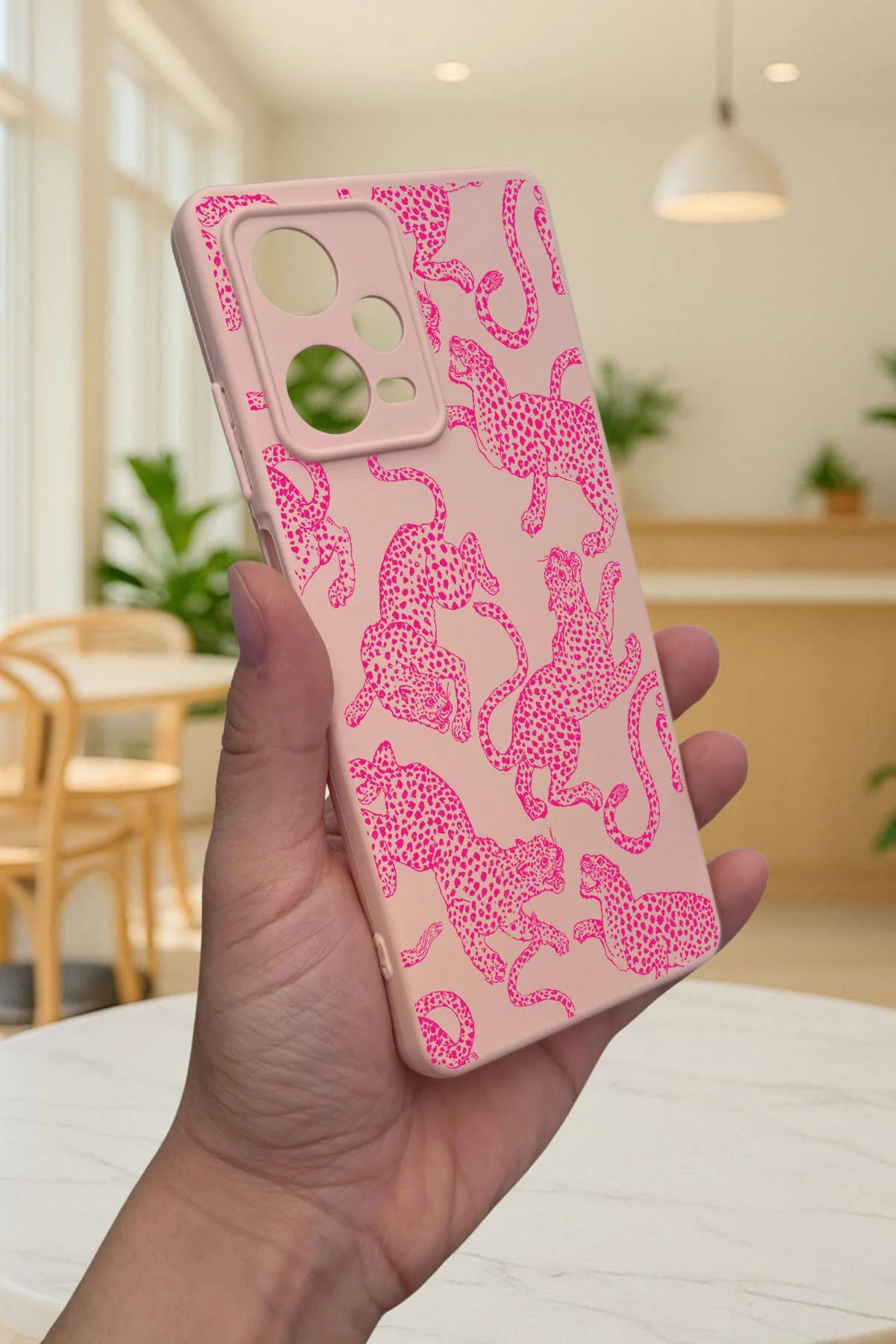 Xiaomi Redmi Note 12 Pro 5G PEMBE LEOPAR DESENLİ Silikon Darbe Emici Klasik Korumalı Rubber Kılıf