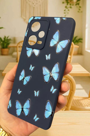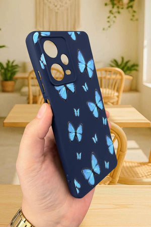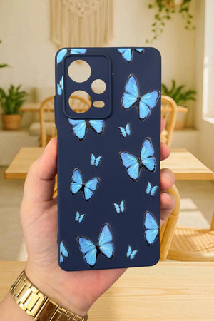 Xiaomi Redmi Note 12 Pro5G-MAVİ KELEBEK DESENLİ Silikon Darbe Emici Klasik Korumalı Rubber Kılıf