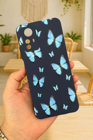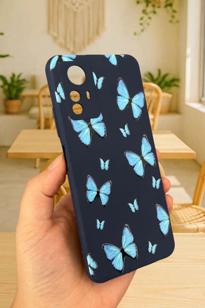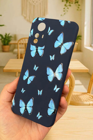 Xiaomi Redmi Note 12S - MAVİ KELEBEK DESENLİ Silikon Darbe Emici Klasik Korumalı Rubber Kılıf