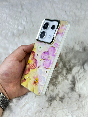 Xiaomi Redmi Note 13 Pro 4G Parlak Çiçekli Taşlı Desenli Paint Kılıf