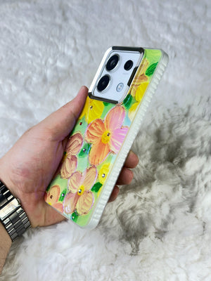Pastel tonlardaki zarif çiçek desenleriyle bezenmiş bu kılıf, telefonunuza hem şıklık hem de koruma katıyor. Yumuşak renkleri ve dokulu yüzeyiyle dikkat çeken bu tasarım, günlük kullanımda hem göz alıcı hem de rahat bir tutuş sağlar.