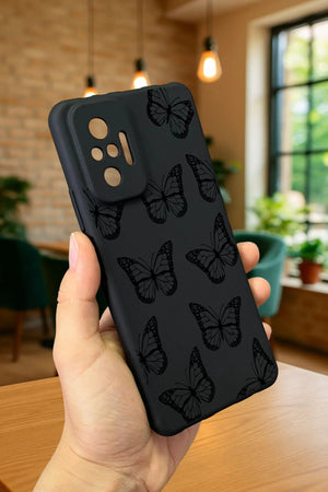 Xiaomi Redmi Note 1O Pro SİYAH KELEBEK DESENLİ Silikon Darbe Emici Klasik Korumalı Rubber Kılıf