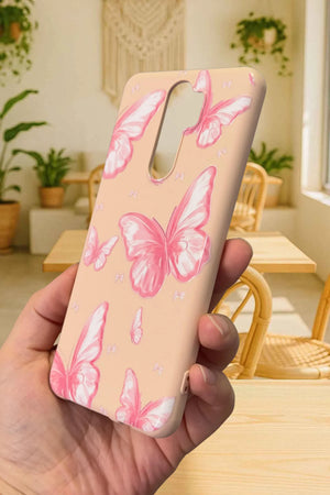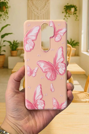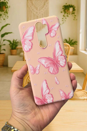 Xiaomi Redmi Note 8 Pro- PEMBE KELEBEK DESENLİ Silikon Darbe Emici Klasik Korumalı Rubber Kılıf