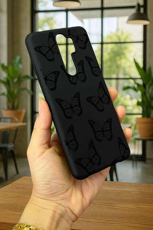 Xiaomi Redmi Note 8 Pro SİYAH KELEBEK DESENLİ Silikon Darbe Emici Klasik Korumalı Rubber Kılıf