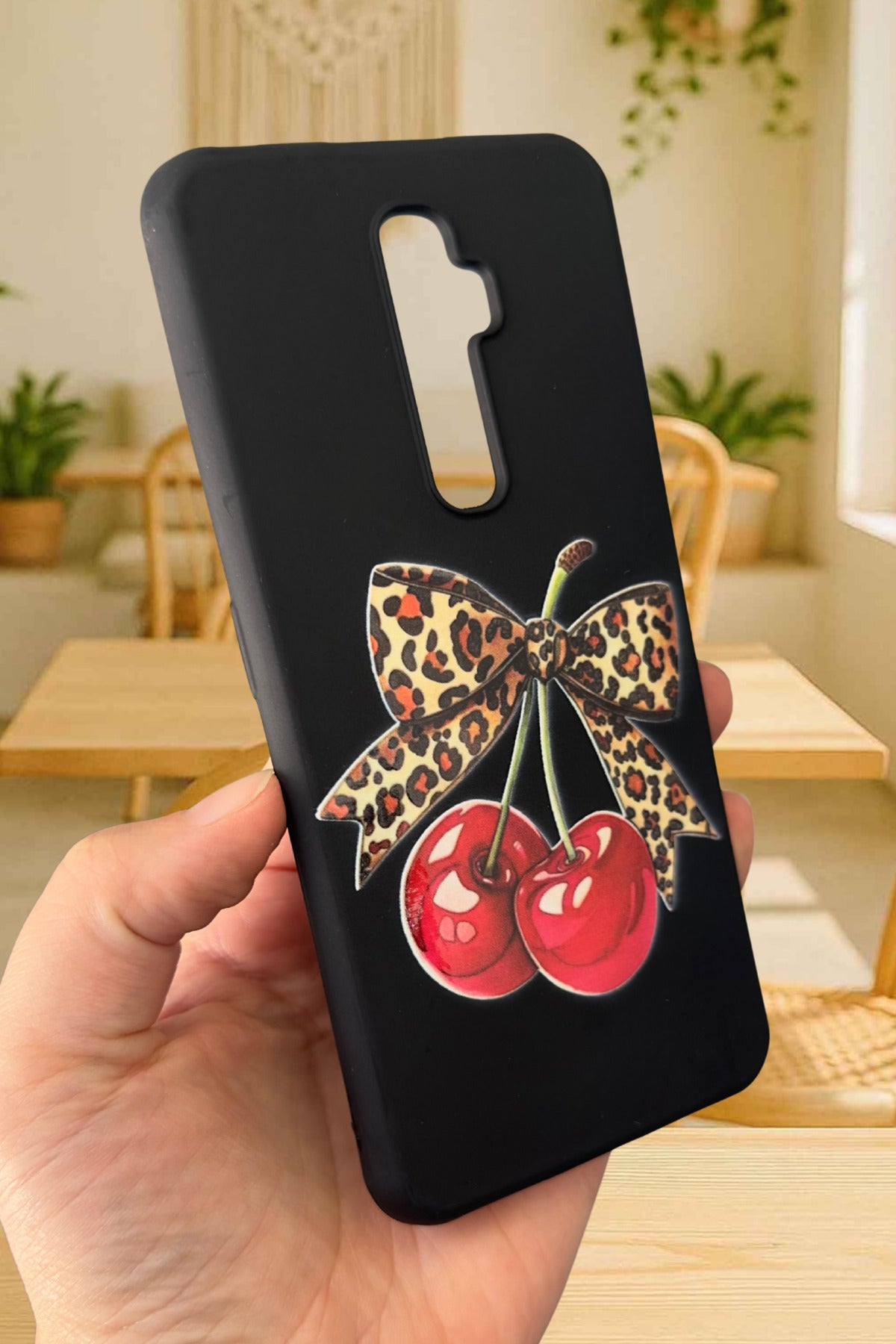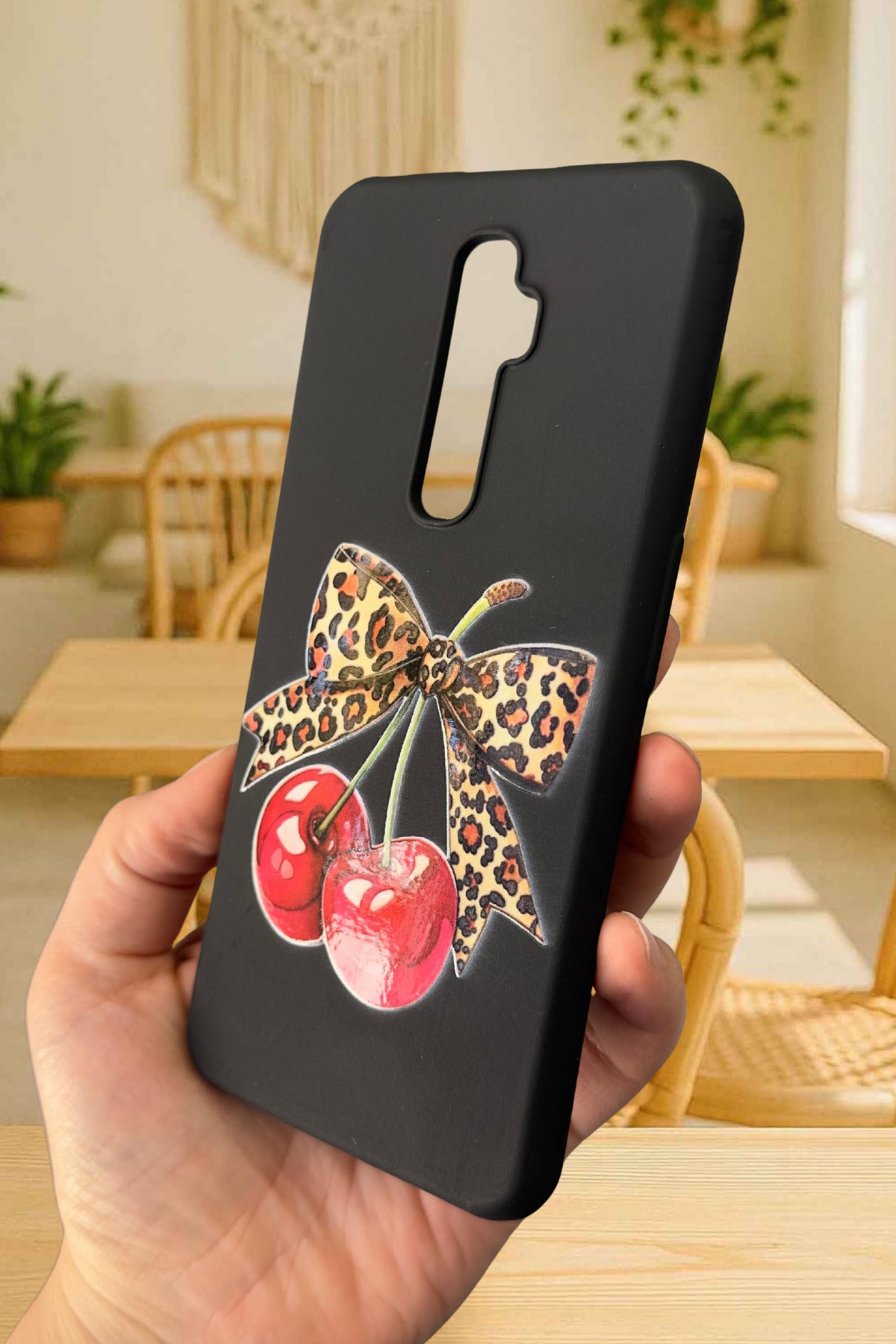Xiaomi Redmi Note 8 Pro Uyumlu Kiraz Leopar Fiyonk Desenli Silikon Darbe Emici Rubber Kılıf
