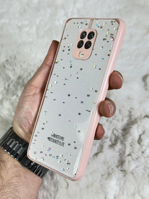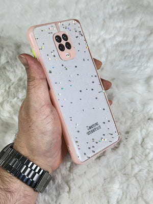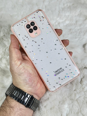 Xiaomi Redmi Note 9 Pro Arkası Sert Silikon Simli Yıldızlı Law Kılıf