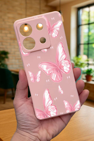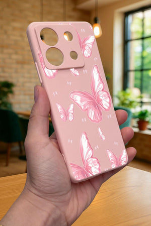 Xiaomi RM Note 13 Pro 5G PEMBE KELEBEK DESENLİ Silikon Darbe Emici Klasik Korumalı Rubber Kılıf